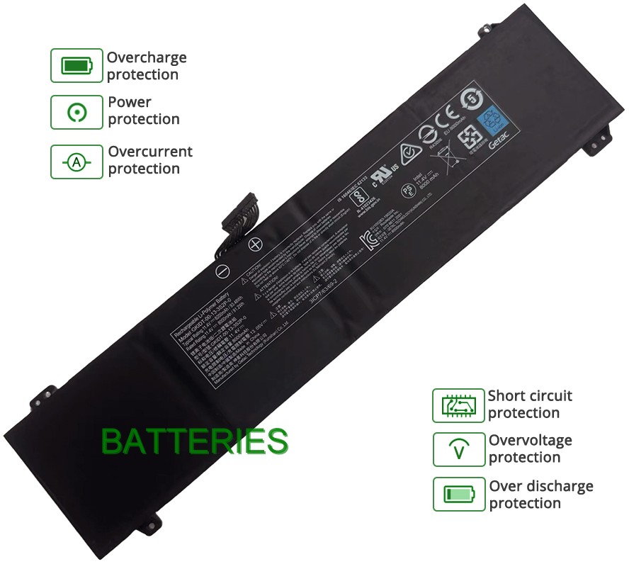 A poor battery with unstable performance may damage your notebook and your safety. Our GETAC GLIDK-03-17-3S2P-0 replacement battery has passed CE, UL, ROHS, and other international authority certifications, which offers a variety of protection functions that effectively prevent common risks like short circuits, overheating, and overvoltage. You can rest assured that our high-quality batteries will protect your laptop and your safety.